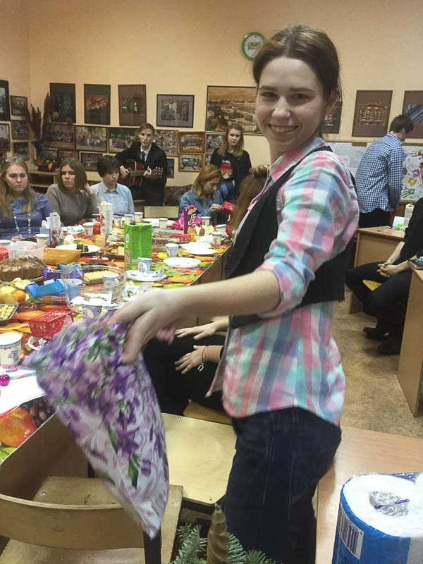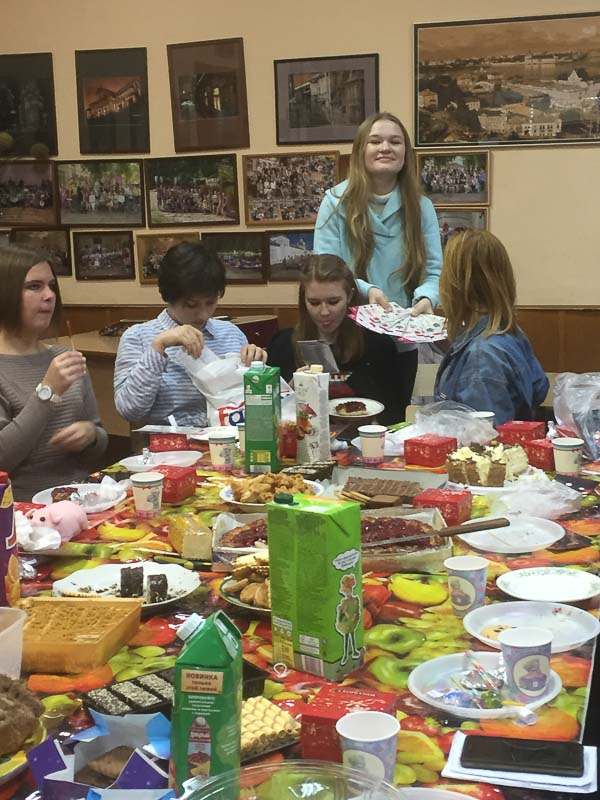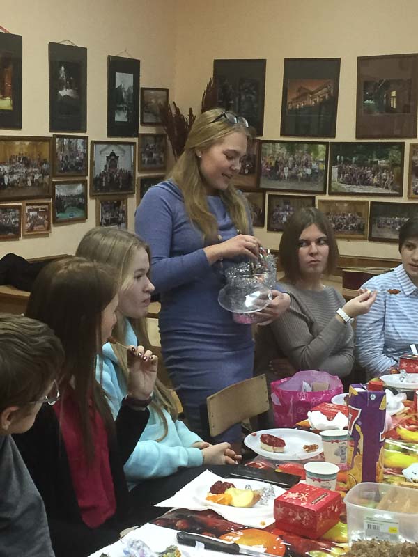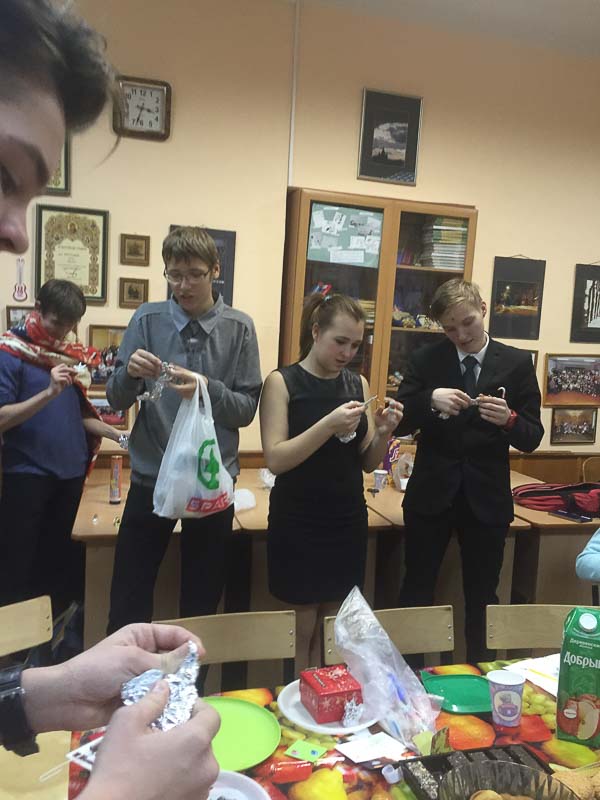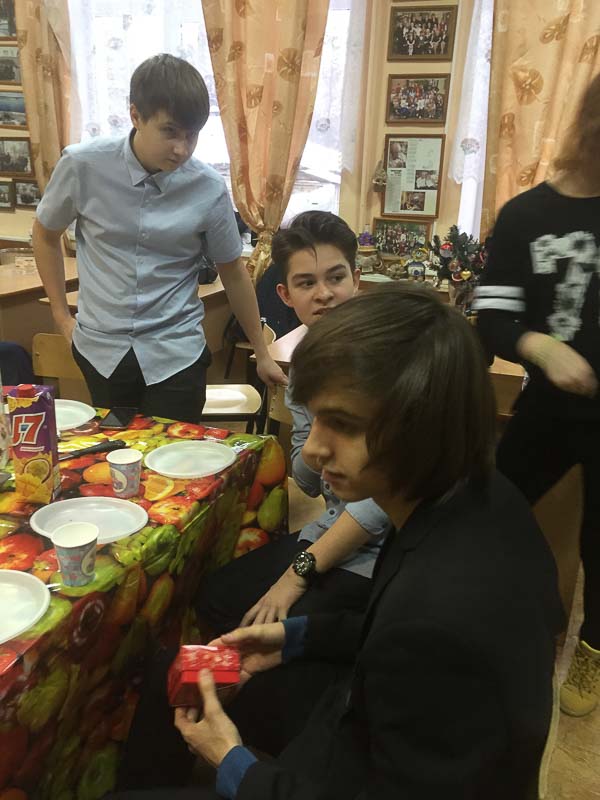 Так повелось еще с прошлых выпусков - перед новым годом и Рождеством проводить в классе день ангела.... Конечно, это чаепитие, сладости- кто что испечет ( печенье, тортики, леденцы, конфеты).... Но самое главное- это подарки- каждый каждому... Открытки, фотографии, игрушки, карандаши, записки- все, что можно придумать, лишь бы с душой! Представляете, в классе 30 человек- 30 подарков! Да еще надо учесть, что на огонек могут заглянуть бывшие ученики или учителя ( они в эти дни, перед каникулами , бывают в школе допоздна) ... А как подарить подарок без хороших теплых слов и пожеланий ? Обязательно каждый каждому должен найти такое слово... Да и без смеха и шутки такой праздник не обходится! И несмотря на лихорадку от учения в последние дни четверти , ко дню ангела готовятся все...