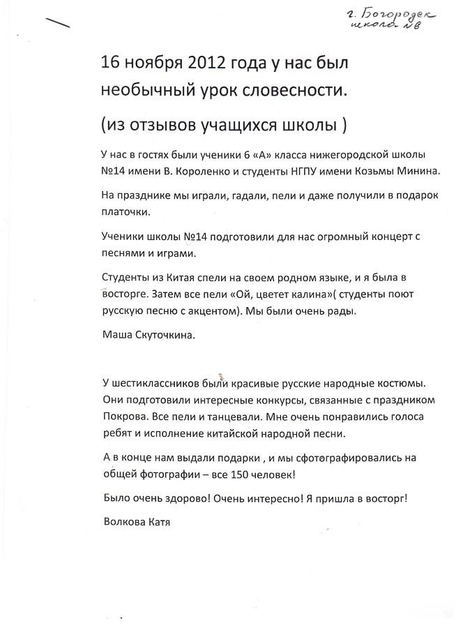 15 ноября 2016 года в к/ц "Рекорд" фольклорный коллектив из 10А школы № 14 им. В. Г. Короленко "Внуки Коляды" принял участие в фольклорном празднике, организованном для наших гостей из Сербии - хорового коллектива гимназии Исидоры Секулич из города Нови Сада.