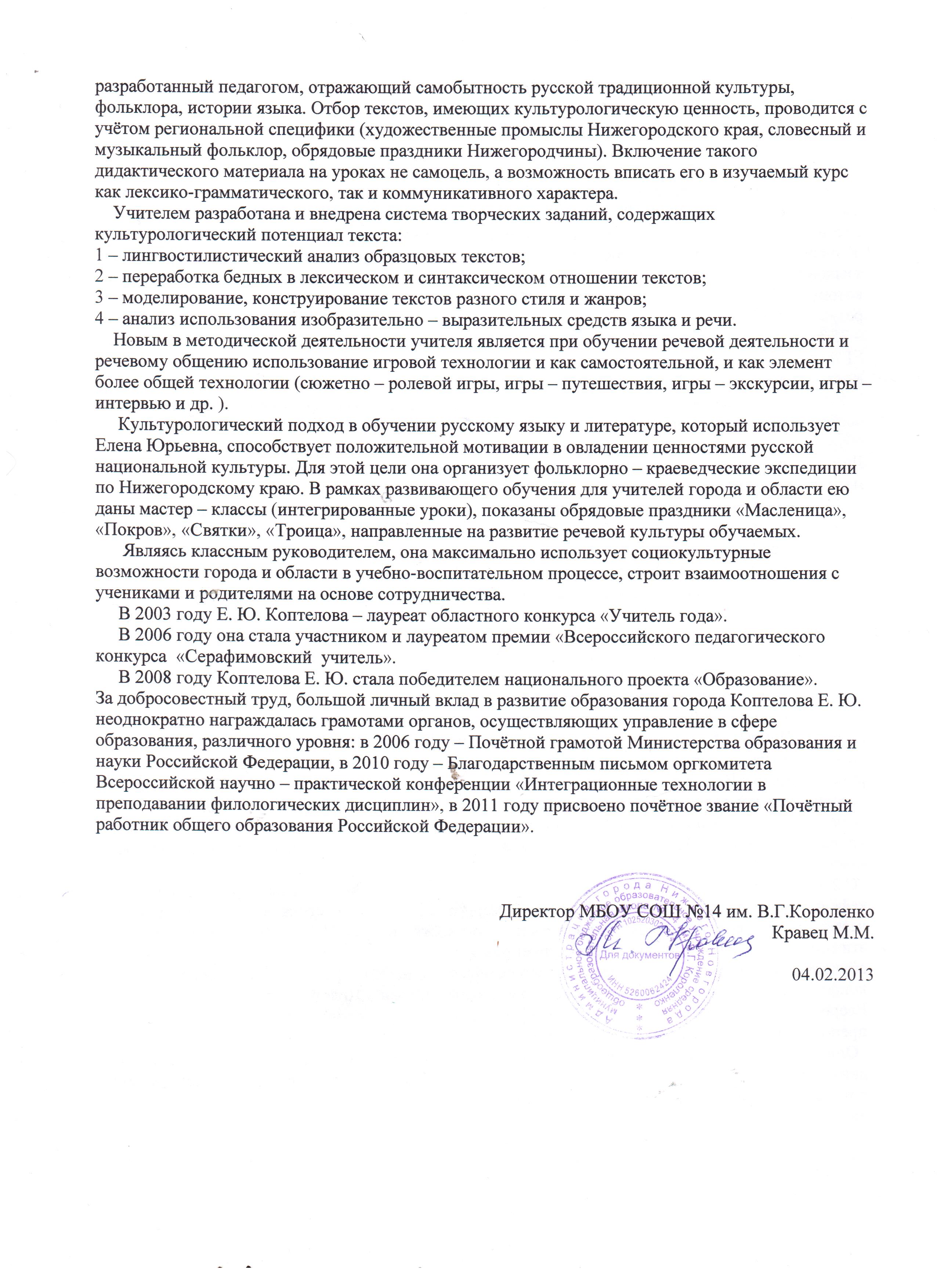 Лауреат конкурсов «Учитель года 2003», «Серафимовский учитель 2006», победитель национального проекта «Лучший учитель России 2008», Лауреат конкурса «Классный классный 2014», Победитель конкурса «Нижний Новгород - 800, 2016 год»